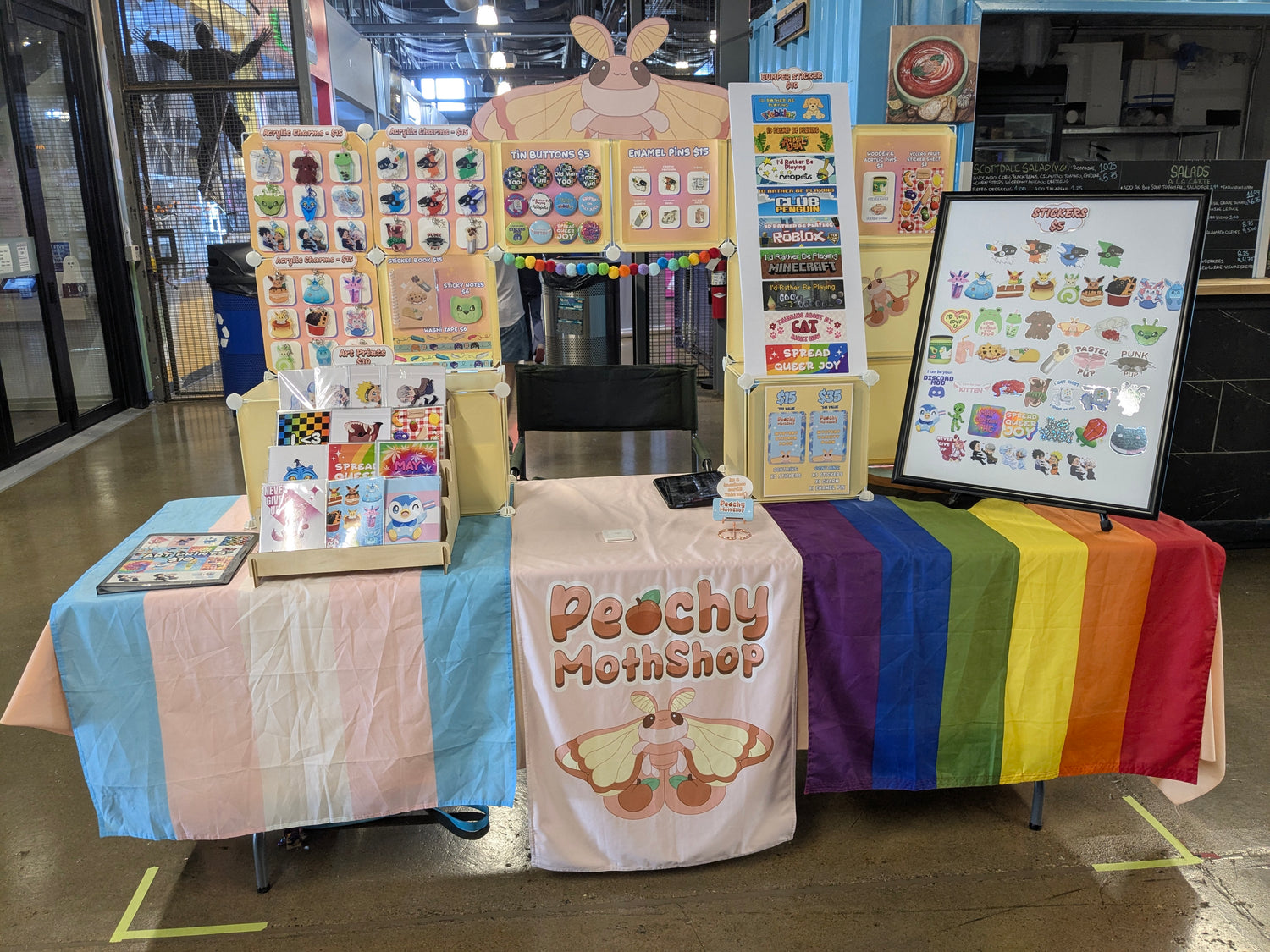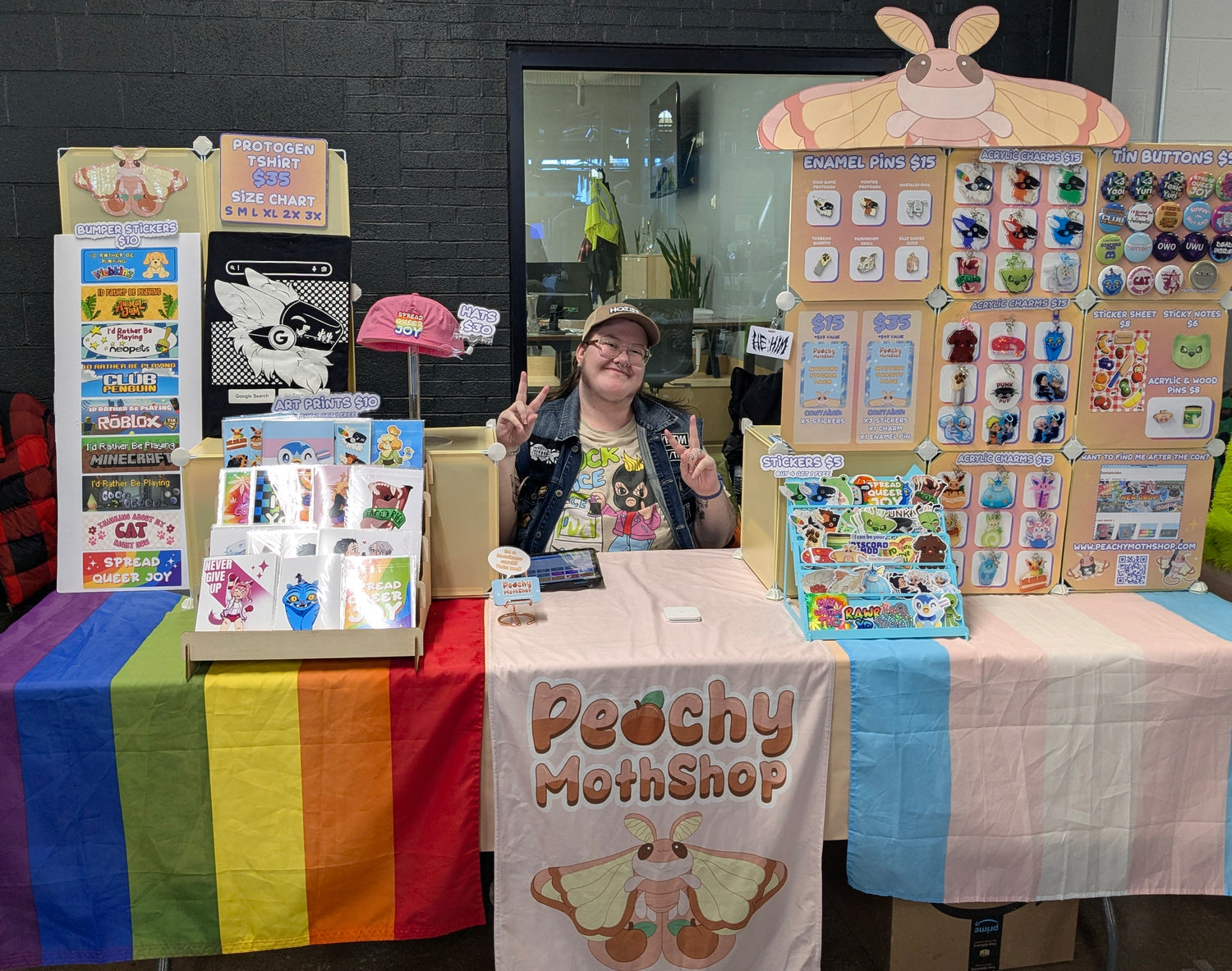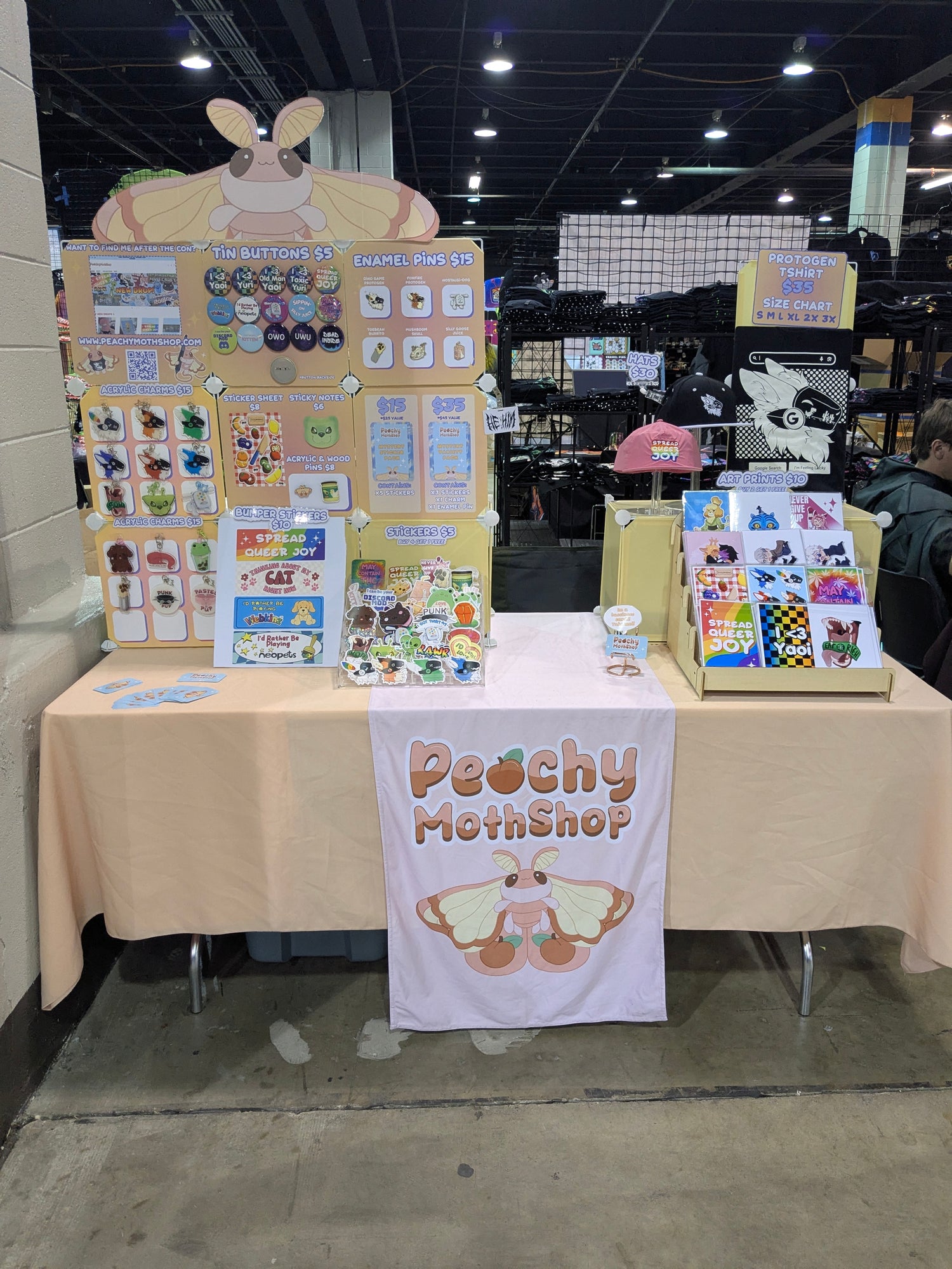 I have been doing digital art out of indiana since 2016. Being artistic is my passion in life and I do this fulltime while being disabled. I make sticker designs, digital art, embroider, craft, and anything and everything creative! In my free time I love playing video games and spending time with my three cats! I also am a big fan of alternative culture and have many tattoos and piercings, with plans for tons more! I am a huge extrovert, an Aries, and my personality type is ENFP so I always love making new friends. I started PeachyMothShop after many years of fun and creative designwork both through freelance commissions as well as graphic design work. Although I quite enjoy completely original concepts, I hope to make more and more fan content in the future. Most likely this content would be based on various things I'm personally invested in like specific shows, anime, and things of that nature, but I'm always open to suggestions!